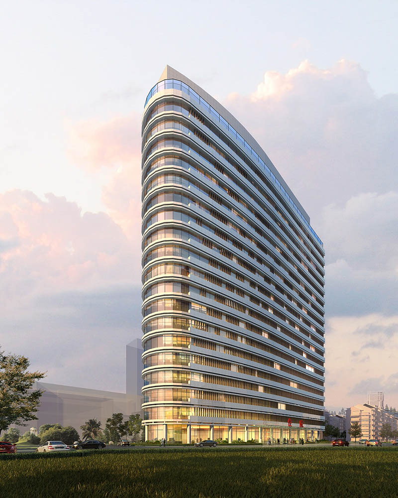 建筑高度為78.6米,地上19層,地下2層,主體結構形式為框剪結構。