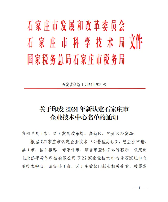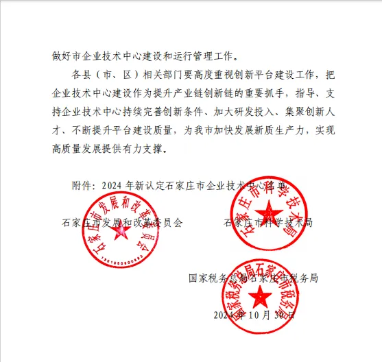 根據《石家莊市認定企業技術中心管理辦法》,經企業申請、縣(市、區)推薦、專家評審、綜合審查和公示等程序,近日,石家莊市發展和改革委員會、石家莊市科學技術局、國家稅務總局石家莊市稅務局等認定中繹集團技術中心為石家莊市企業技術中心。